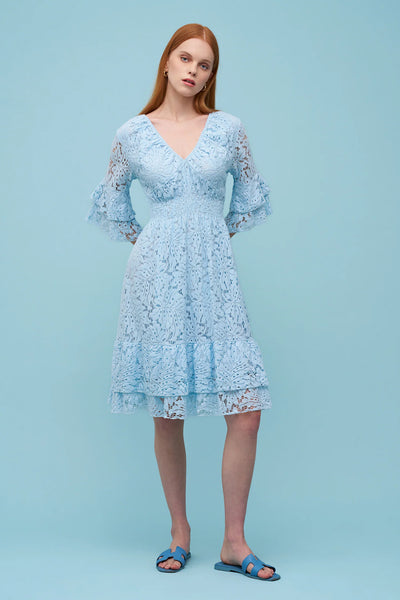 The Jilly Dress by Astrid captures effortless elegance with understated femininity with its delicate lace detailing and romantic three-quarter length sleeves.