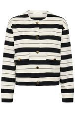 A jacket cardigan combining smart tailoring with everyday comfort. The Gida Vincent Jacket by In Wear features a boxy fit, round neckline, button front, and practical flap pockets, making it versatile for various occasions and easy to layer.