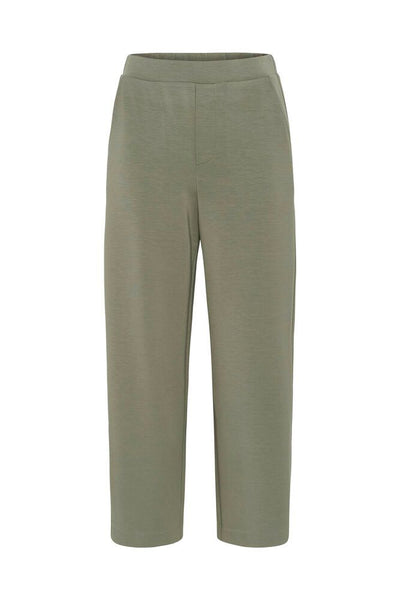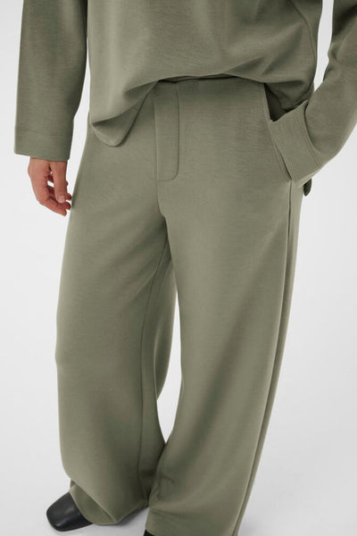 Classic trousers with wide legs and an elastic waist for ultimate comfort. The trousers have a regular fit.