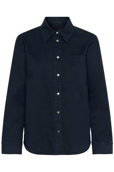 This shirt in a cotton blend features a slightly structured texture and a minimalist design with press buttons and a single chest pocket. The olive green shade adds warmth and versatility to your wardrobe. Wear it open over a T-shirt or buttoned with jeans for a casual look.