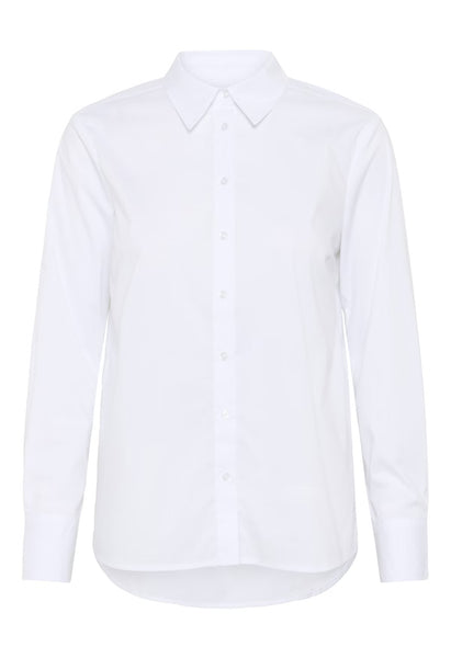This classic shirt in white poplin features a crisp cut and a timeless collar. The clean look and smooth cotton quality make it perfect for both work and relaxed days. Style it with jeans for a casual feel or tailored trousers for a more formal look