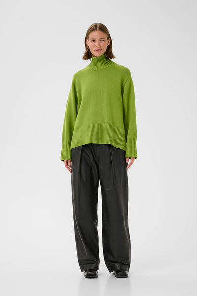 This women's turtleneck sweater features a relaxed fit and wide ribbed hem, providing comfort and style. Perfect for layering, its long sleeves and high neckline offer versatile, timeless appeal for work or casual