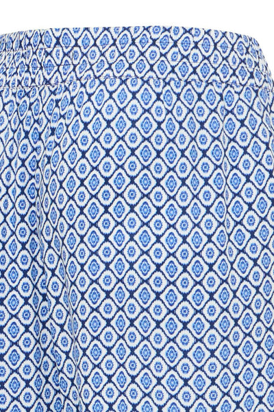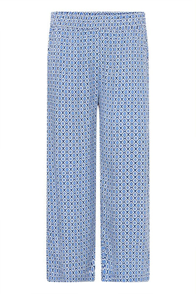Wide-leg trousers offer a relaxed fit and feature an elastic waistband for comfort. The cropped length and lightweight fabric provide ease and versatility for everyday wear.