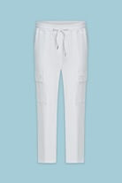 Classic narrow leg cargo in comfortable stretch viscose feature a drawstring waist, side cargo pockets back patch pockets and a modern cropped length.